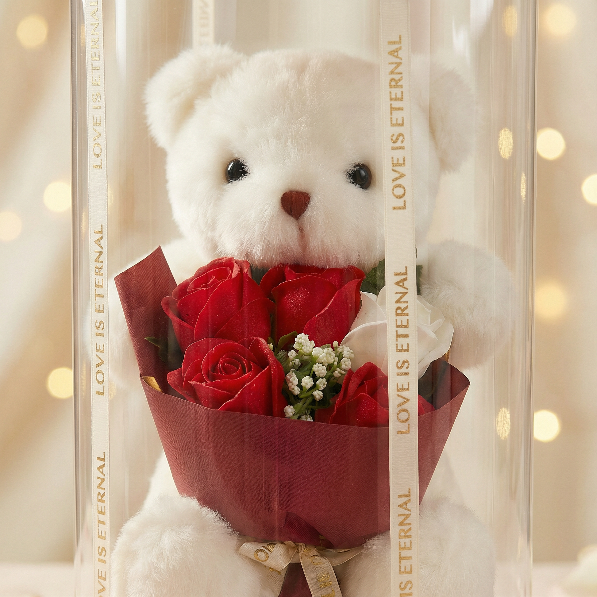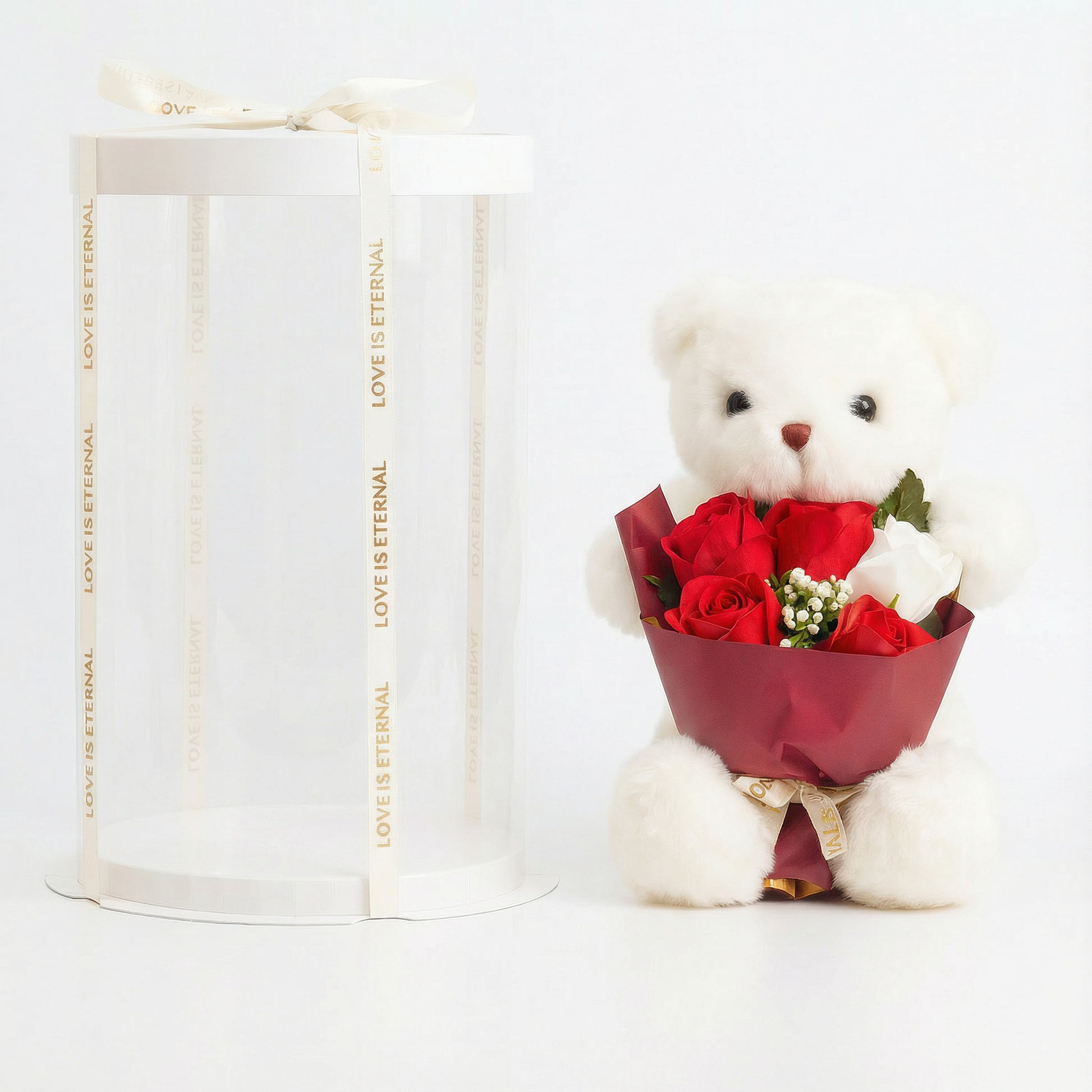 Pluszowy Miś z Bukietem Mydlanych Róż